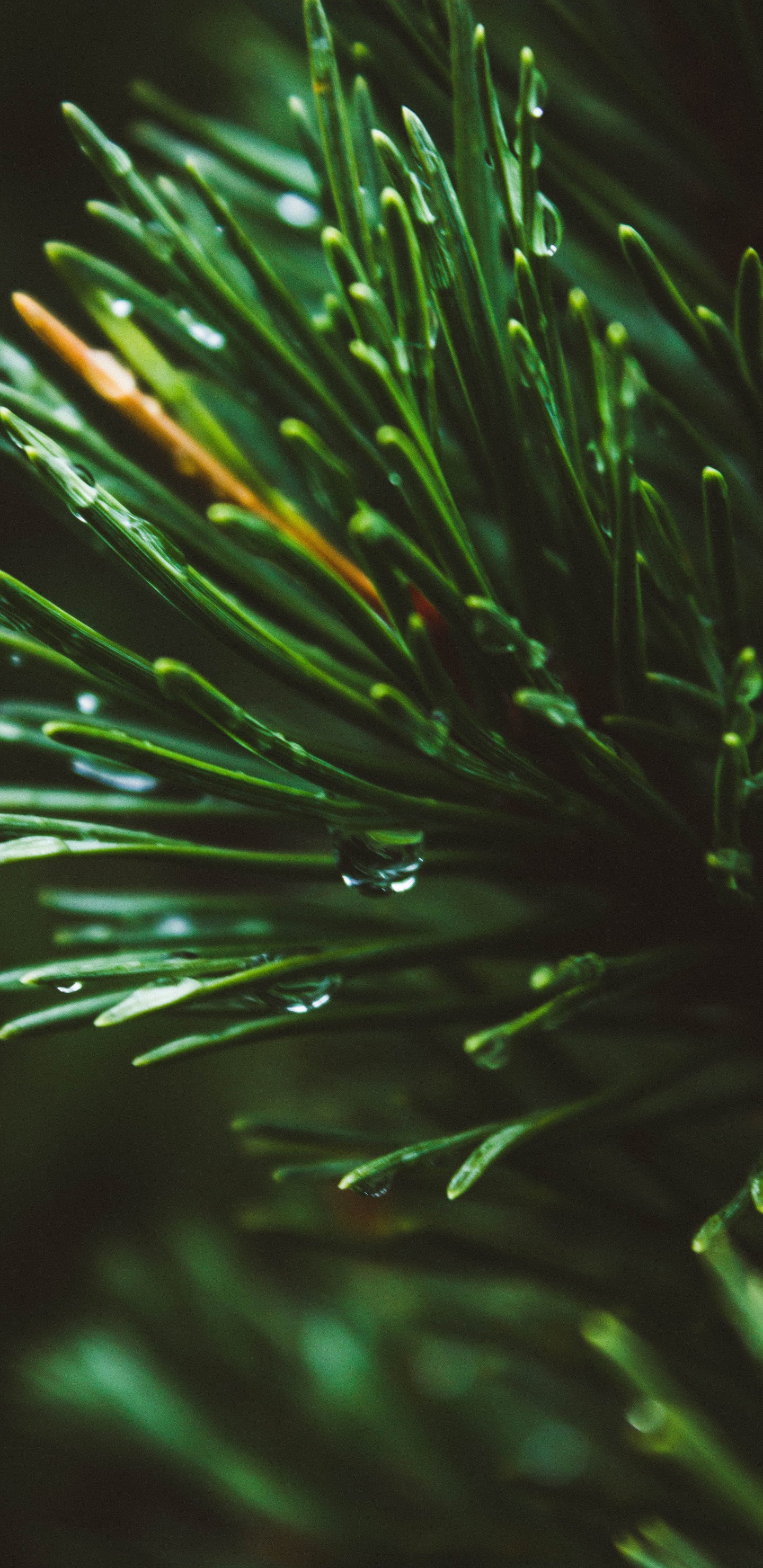 Wallpaper: pine, green, drops - 1440x2960