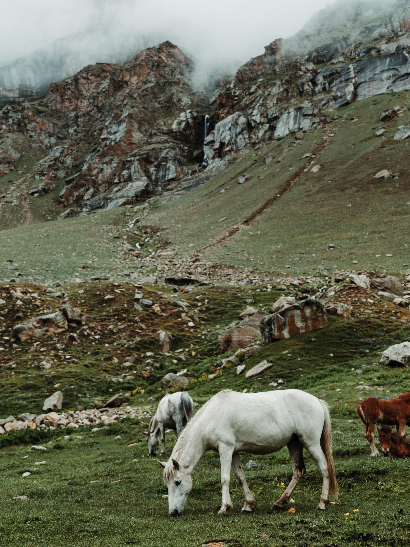 Wallpaper: herd, horses, green - 1620x2160