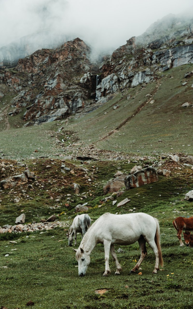 Wallpaper: herd, horses, green - 800x1280