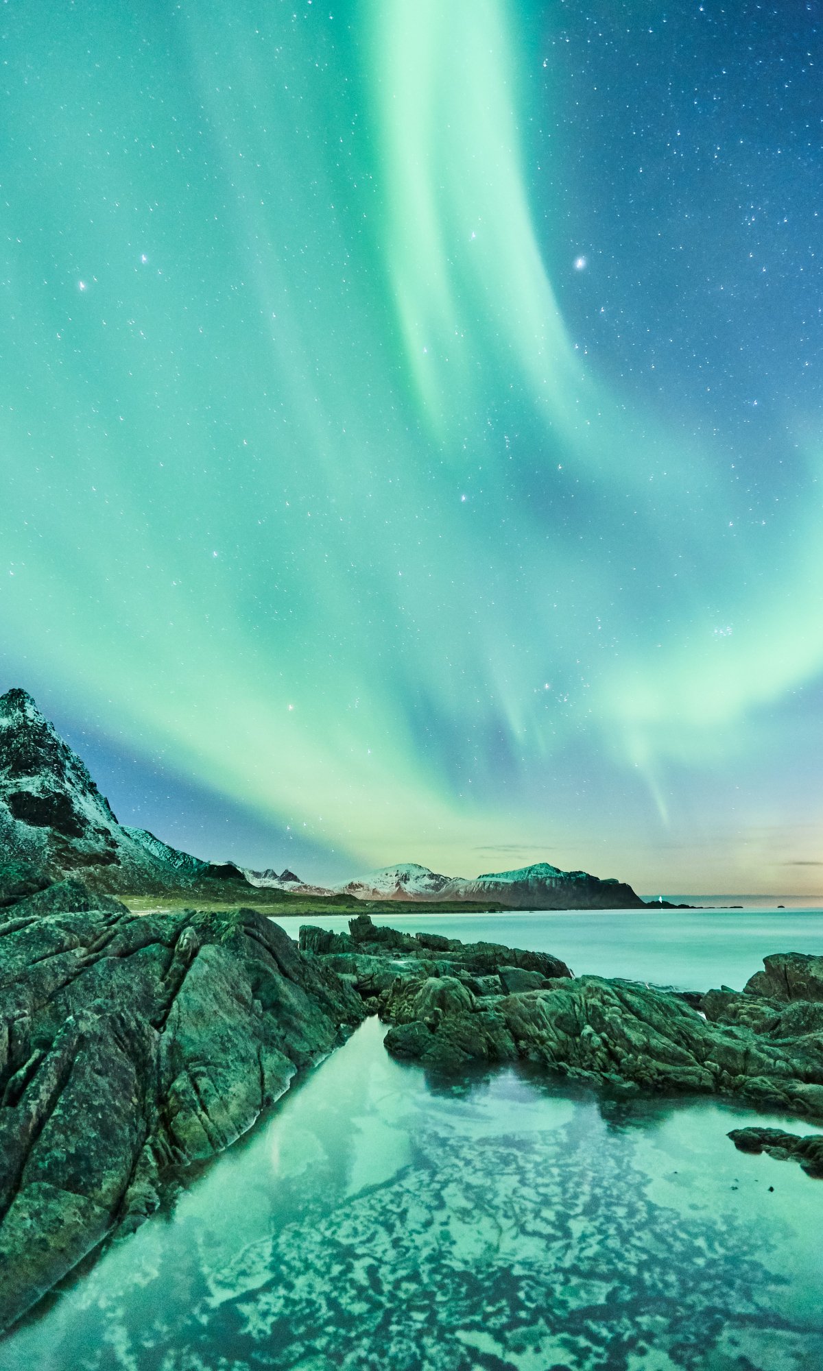 Wallpaper: northern lights, Lofoten Islands - 1200x2000