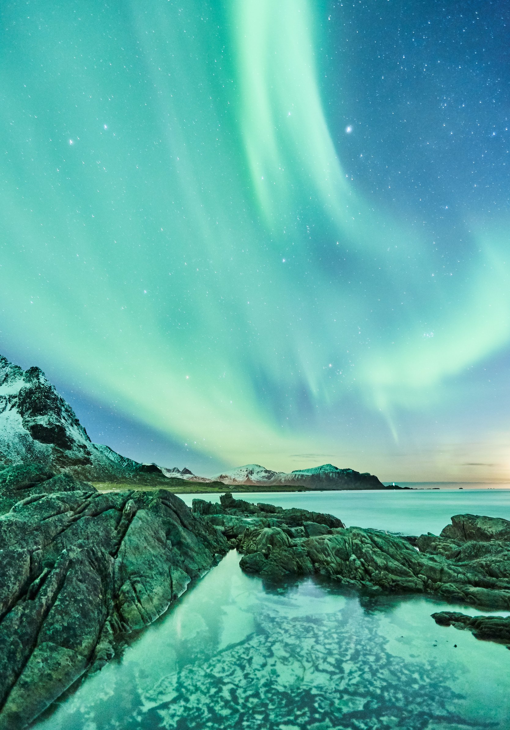 Wallpaper: northern lights, Lofoten Islands - 1668x2388