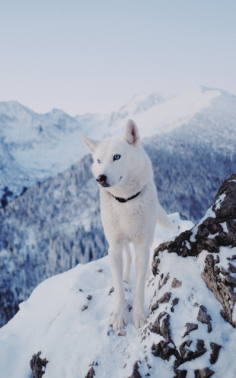 Wallpaper: dog, mountains, snow - 800x1280