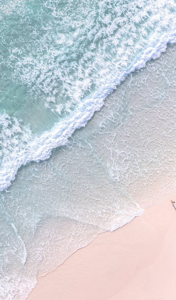top view, sea foam, beach Wallpaper 600x1024