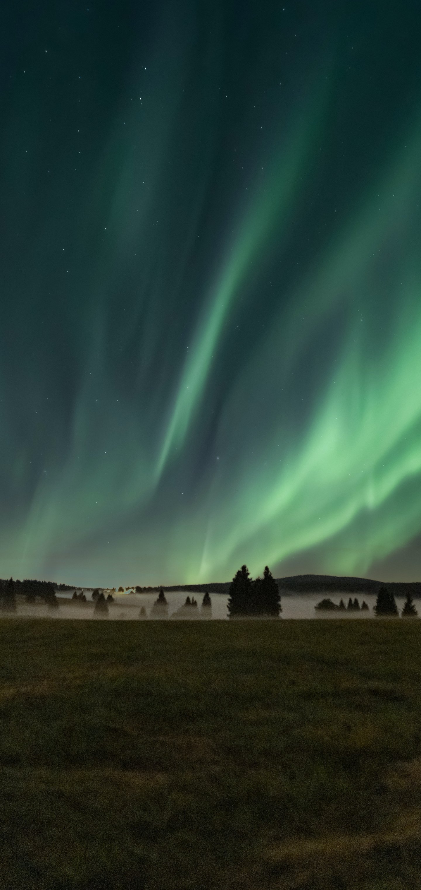 Wallpaper: northern lights, night, fog - 1440x3040