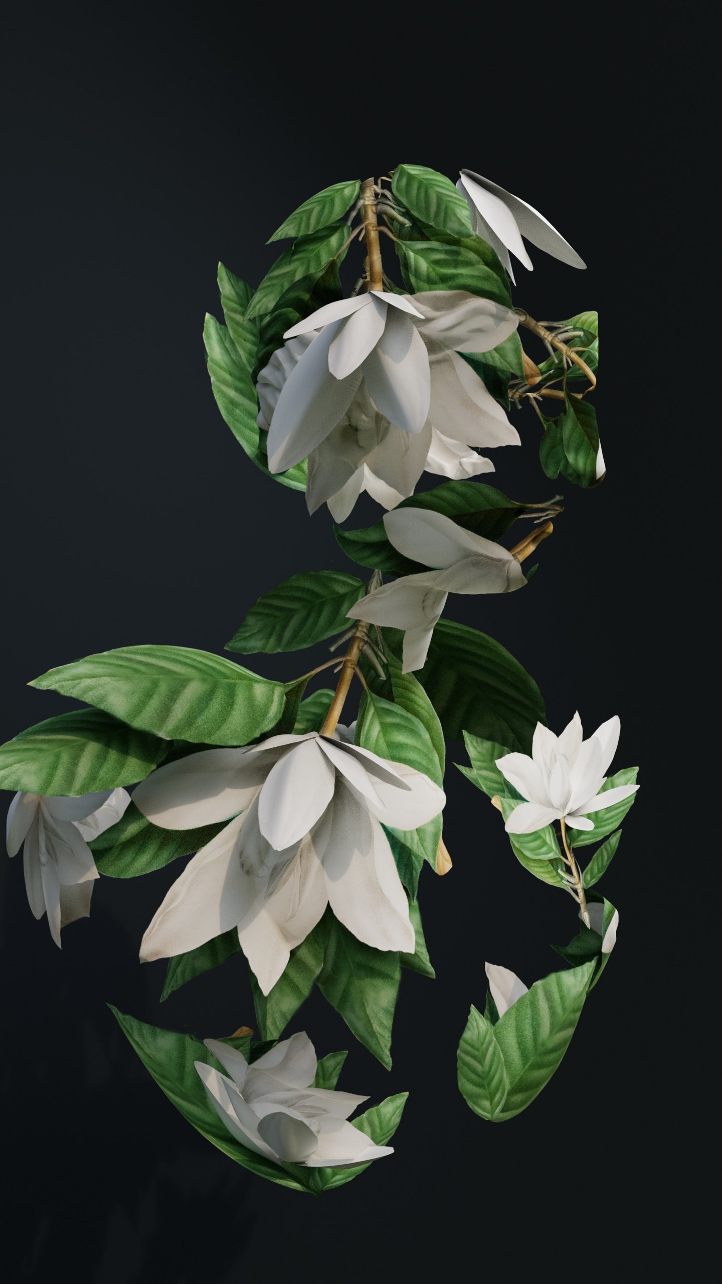 Wallpaper: 3D modeling, leaves - 1440x2560