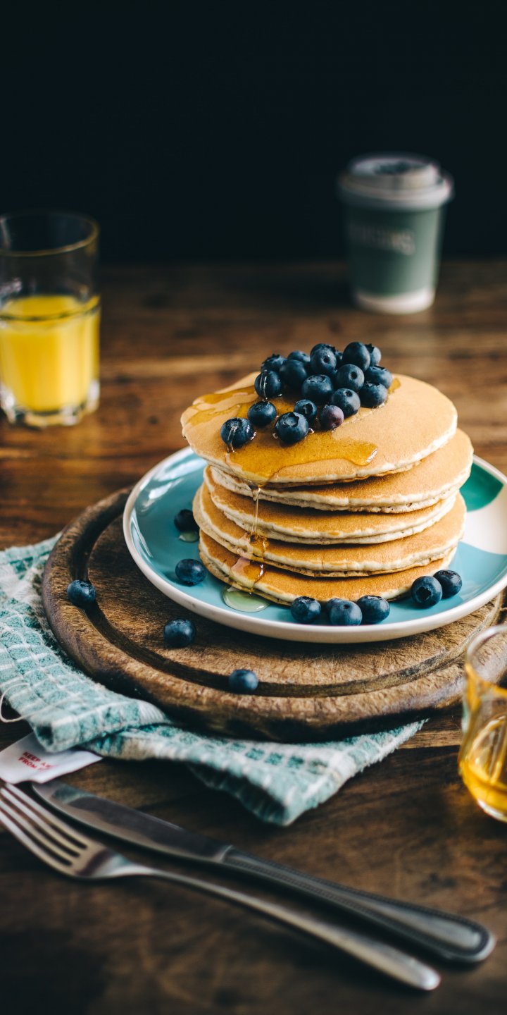 Wallpaper: pancakes, honey, berries - 720x1440