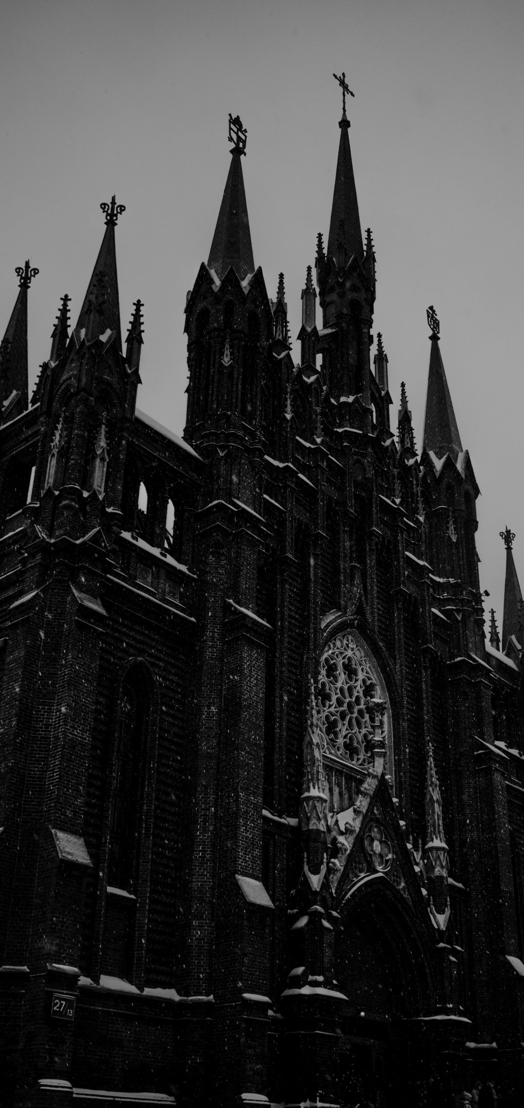 Wallpaper: cathedral, snowfall - 1080x2280