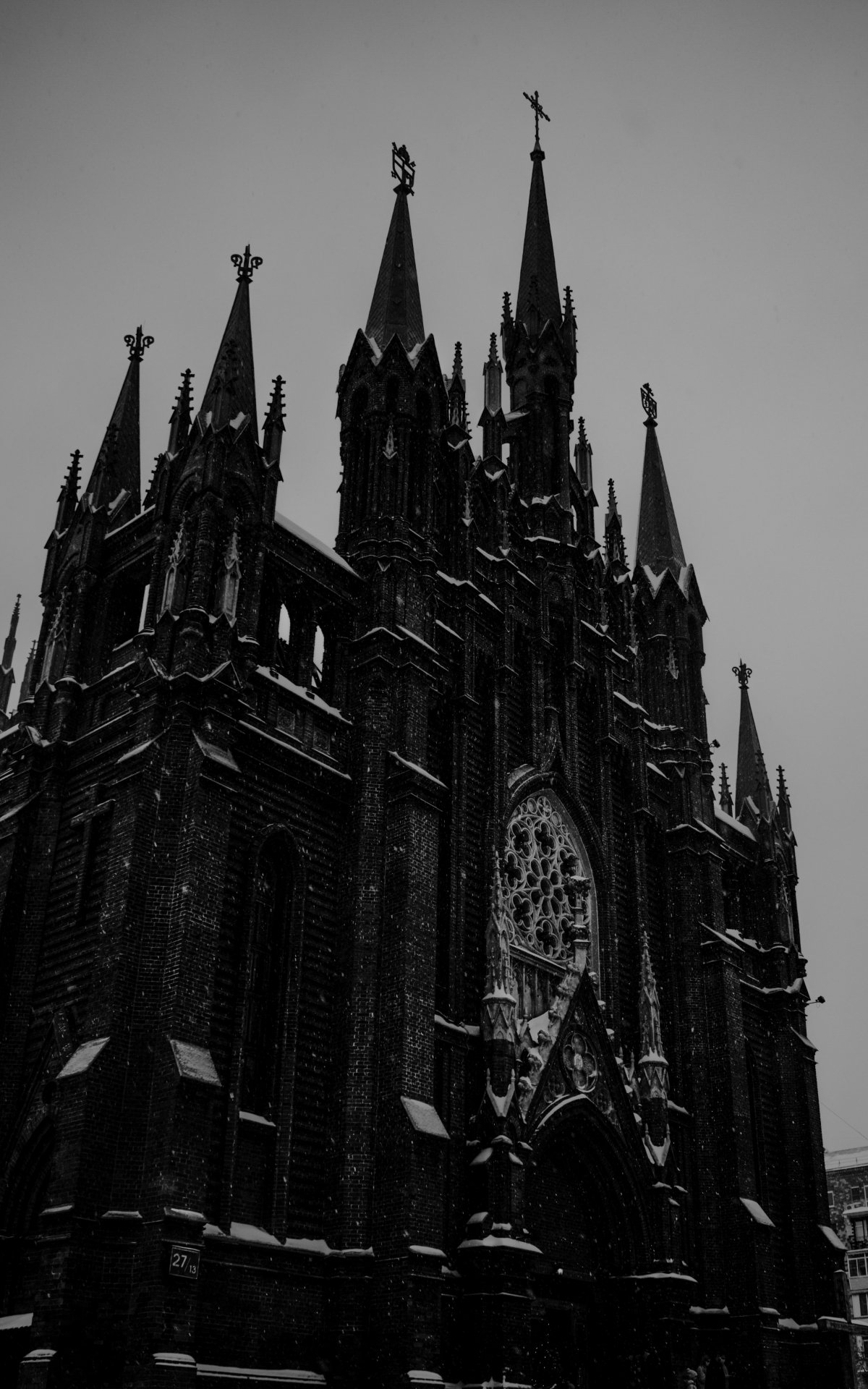 Wallpaper: cathedral, snowfall - 1200x1920