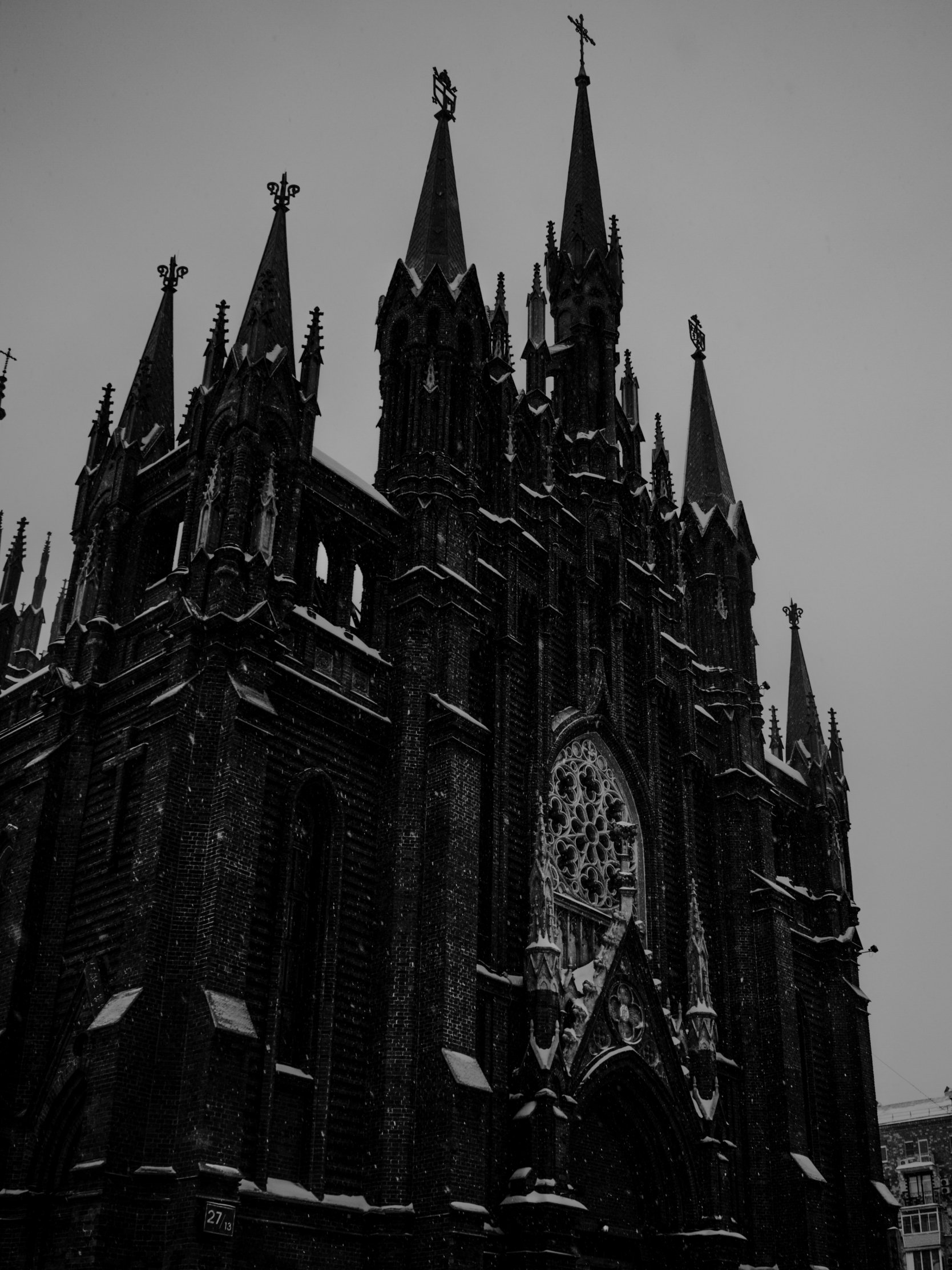 Wallpaper: cathedral, snowfall - 1668x2224