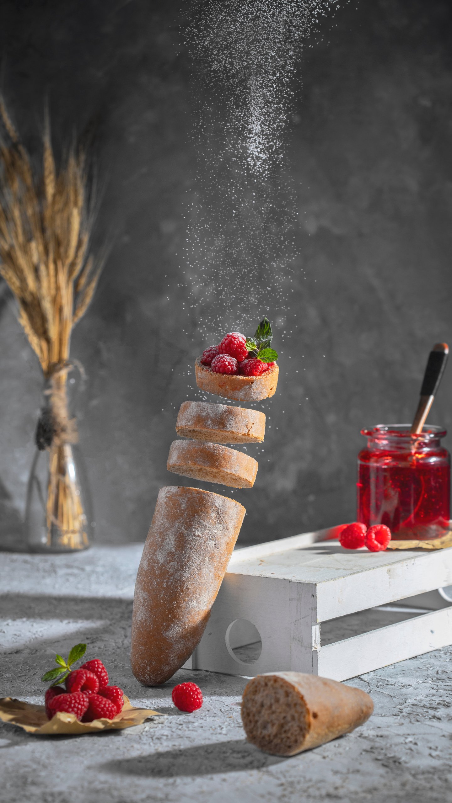 Wallpaper: baguette, berries, breakfast - 1440x2560
