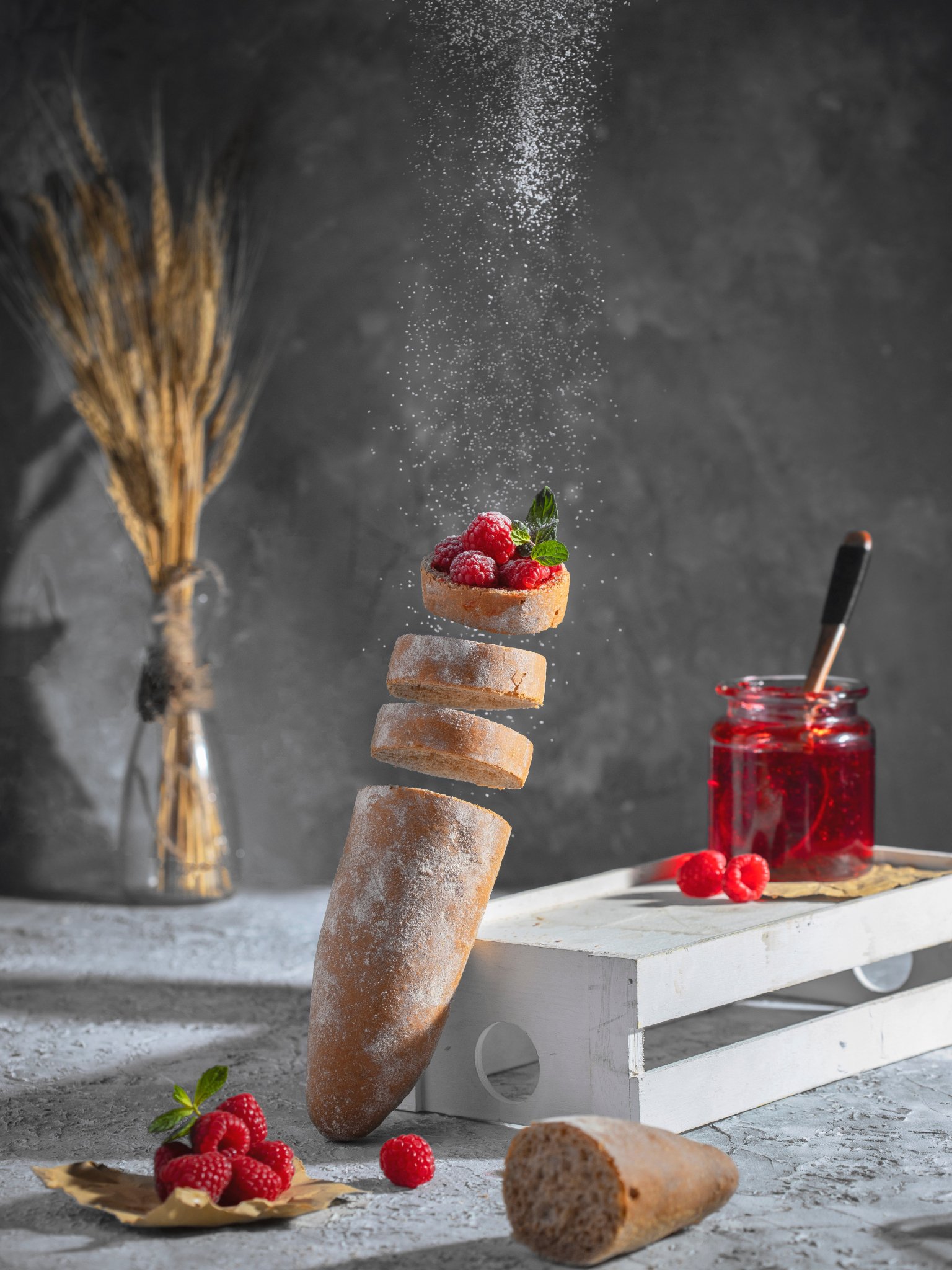 Wallpaper: baguette, berries, breakfast - 1536x2048