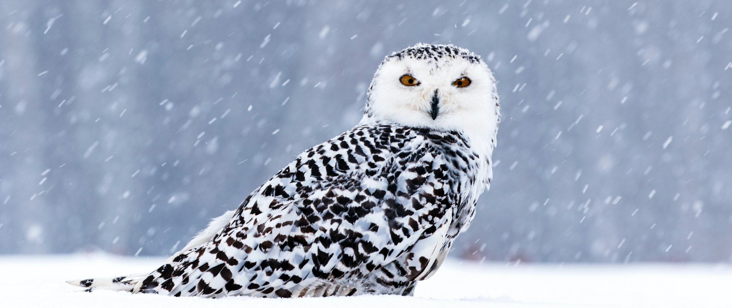 Wallpaper: owl, yellow eyes - 2560x1080