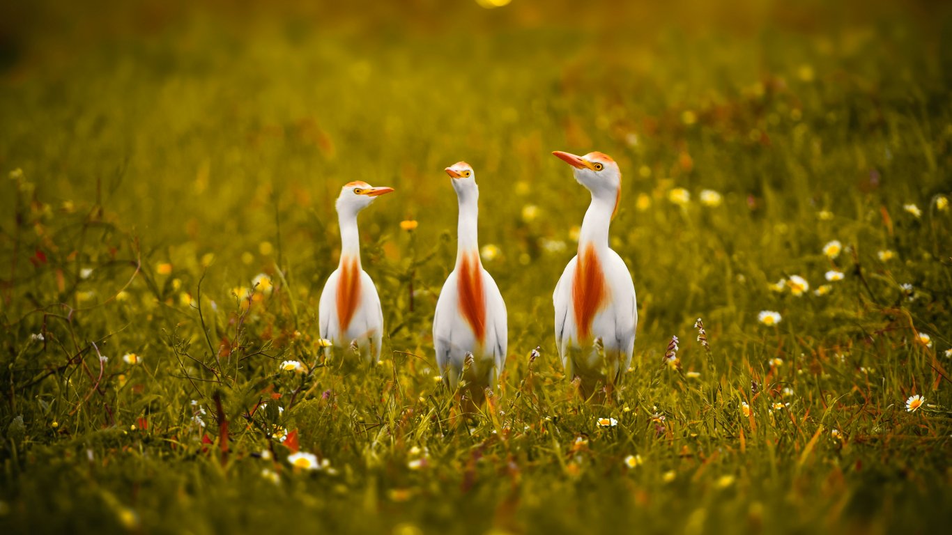 Wallpaper: birds, grass, yellow eyes - 1366x768