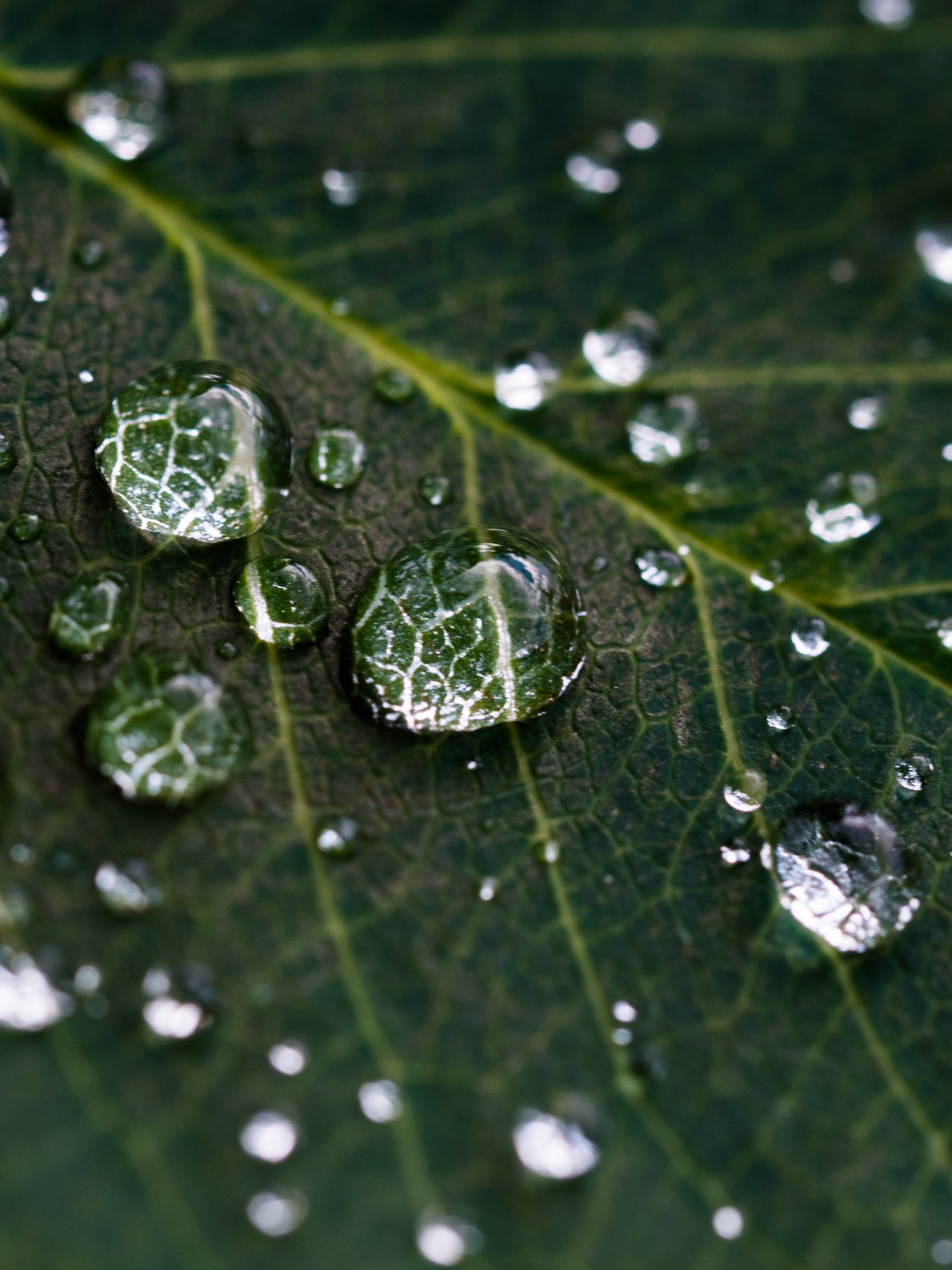Wallpaper: water droplets, sheet, green - 1620x2160