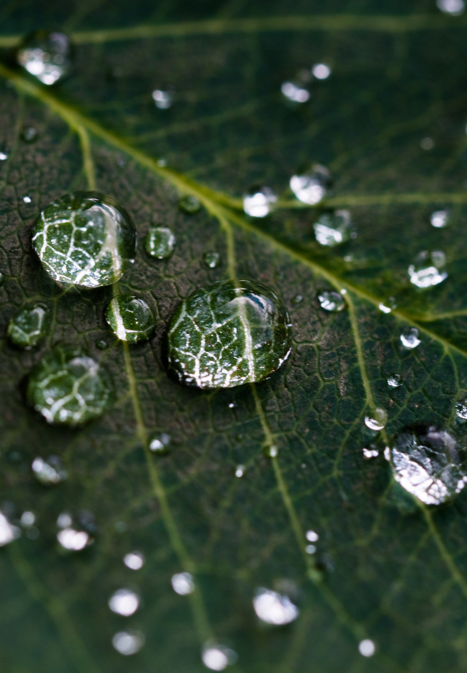 Wallpaper: water droplets, sheet, green - 1640x2360