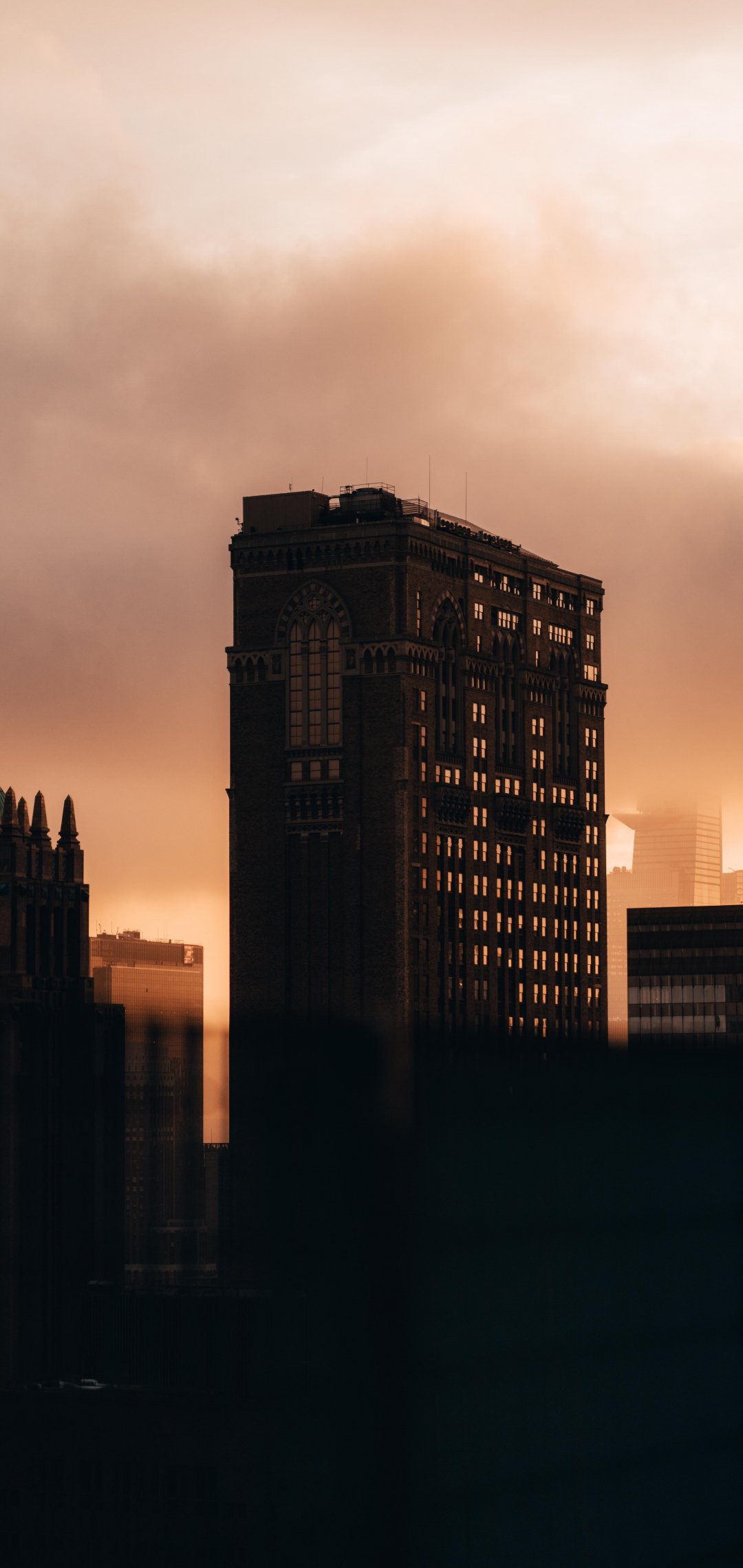Wallpaper: city, evening, buildings - 1080x2280