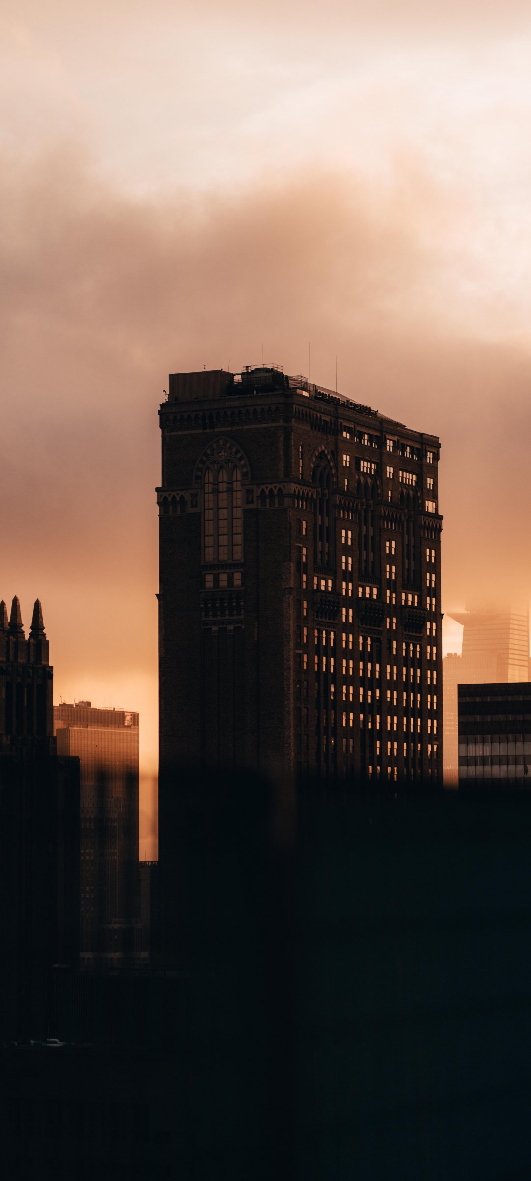 Wallpaper: city, evening, buildings - 1080x2400