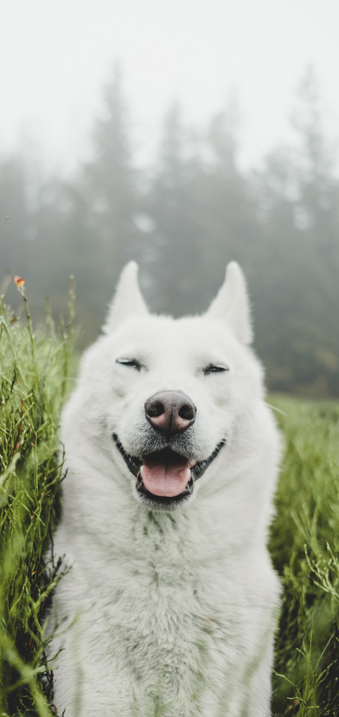 Wallpaper: dog, smile, grass - 1080x2280