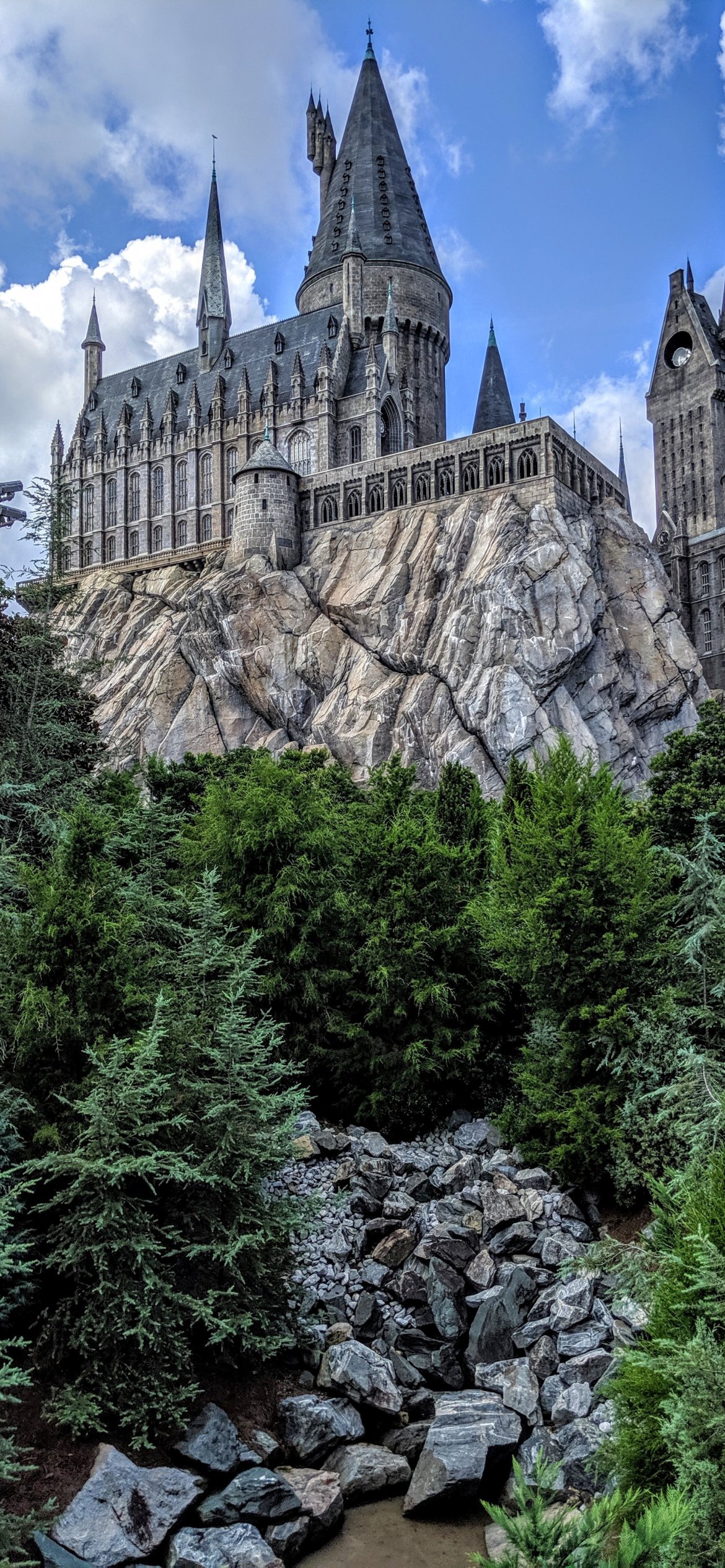 Wallpaper: Hogwarts, lock, coniferous trees - 1170x2532