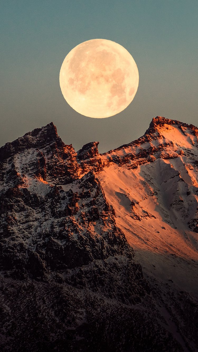 Wallpaper: Iceland, moon, mountains - 750x1334