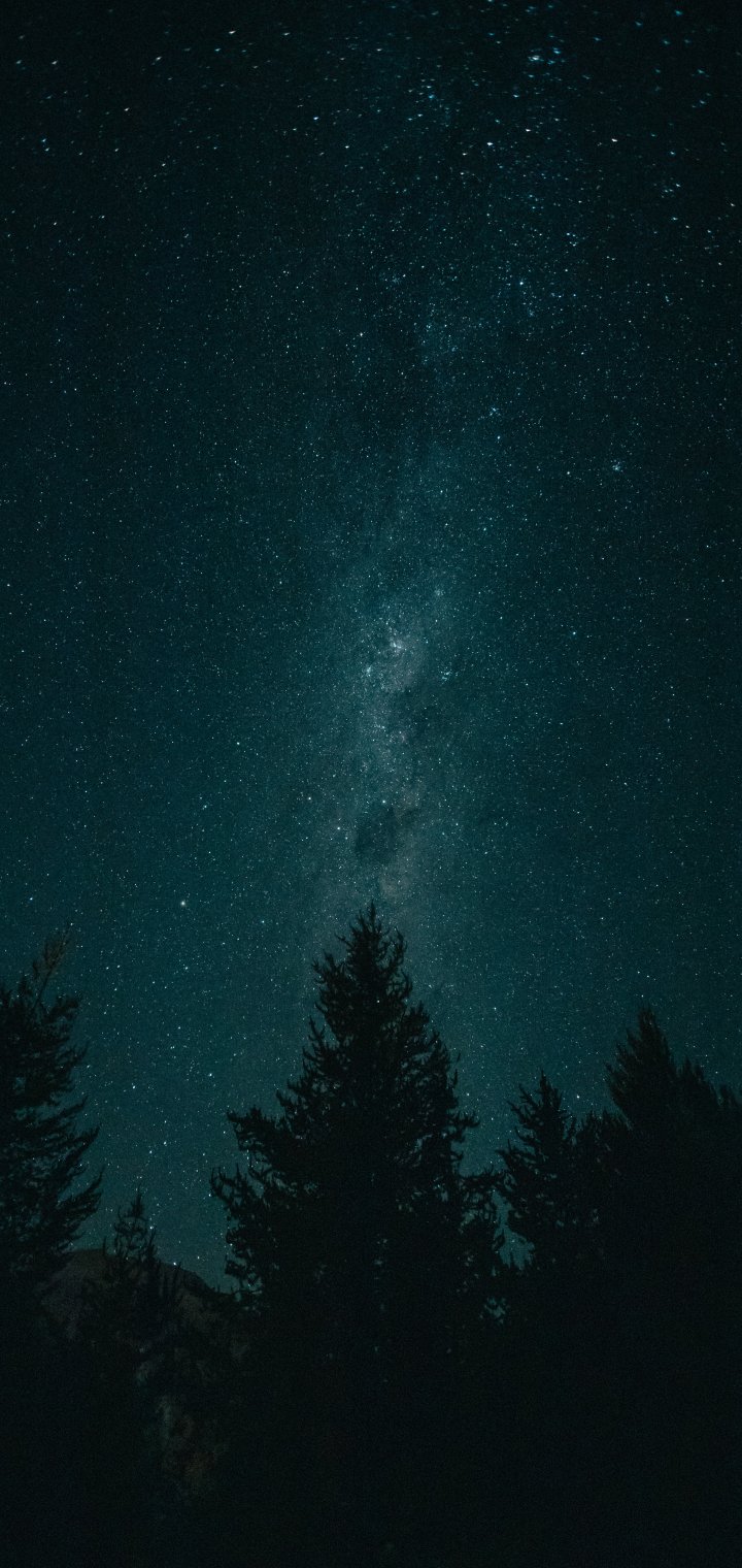 Wallpaper: night, starry sky, forest - 720x1520