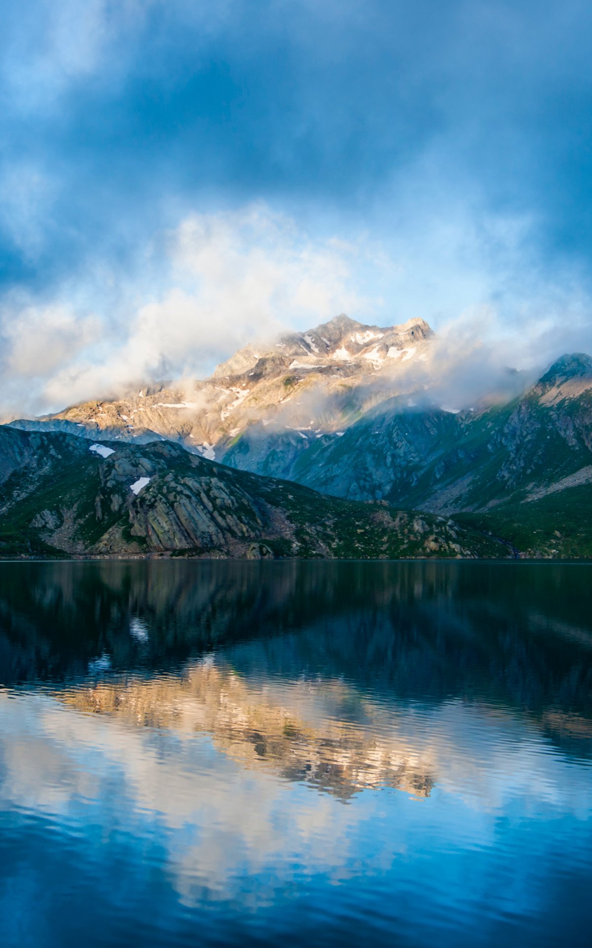 Wallpaper: mountains, lake, clouds - 1200x1920