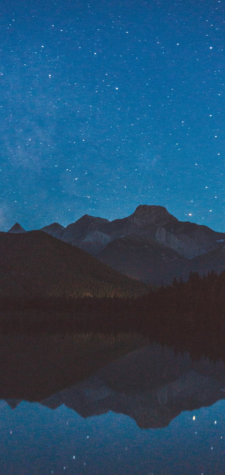 night, lake, mountains, universe Wallpaper 720x1520