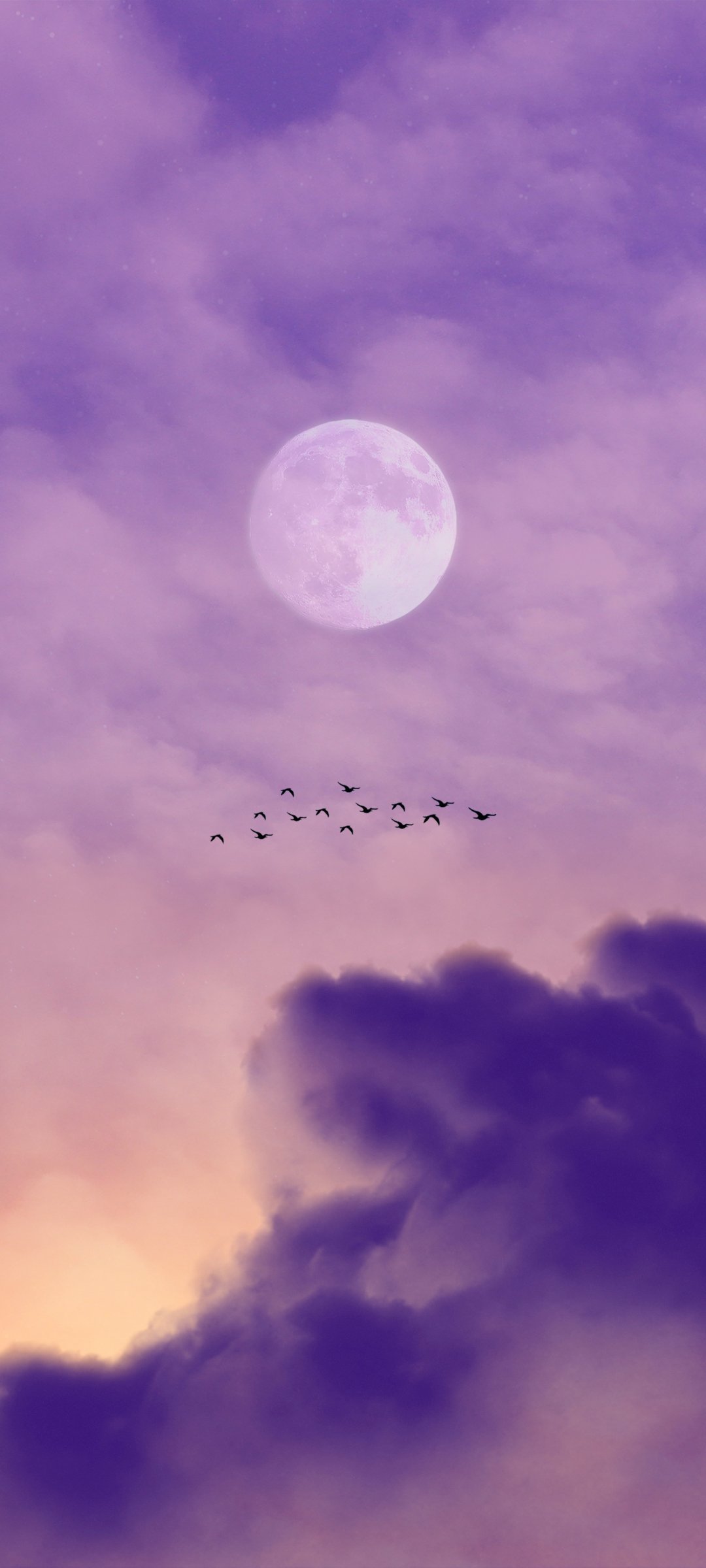 Wallpaper: moon, clouds, birds - 1080x2400