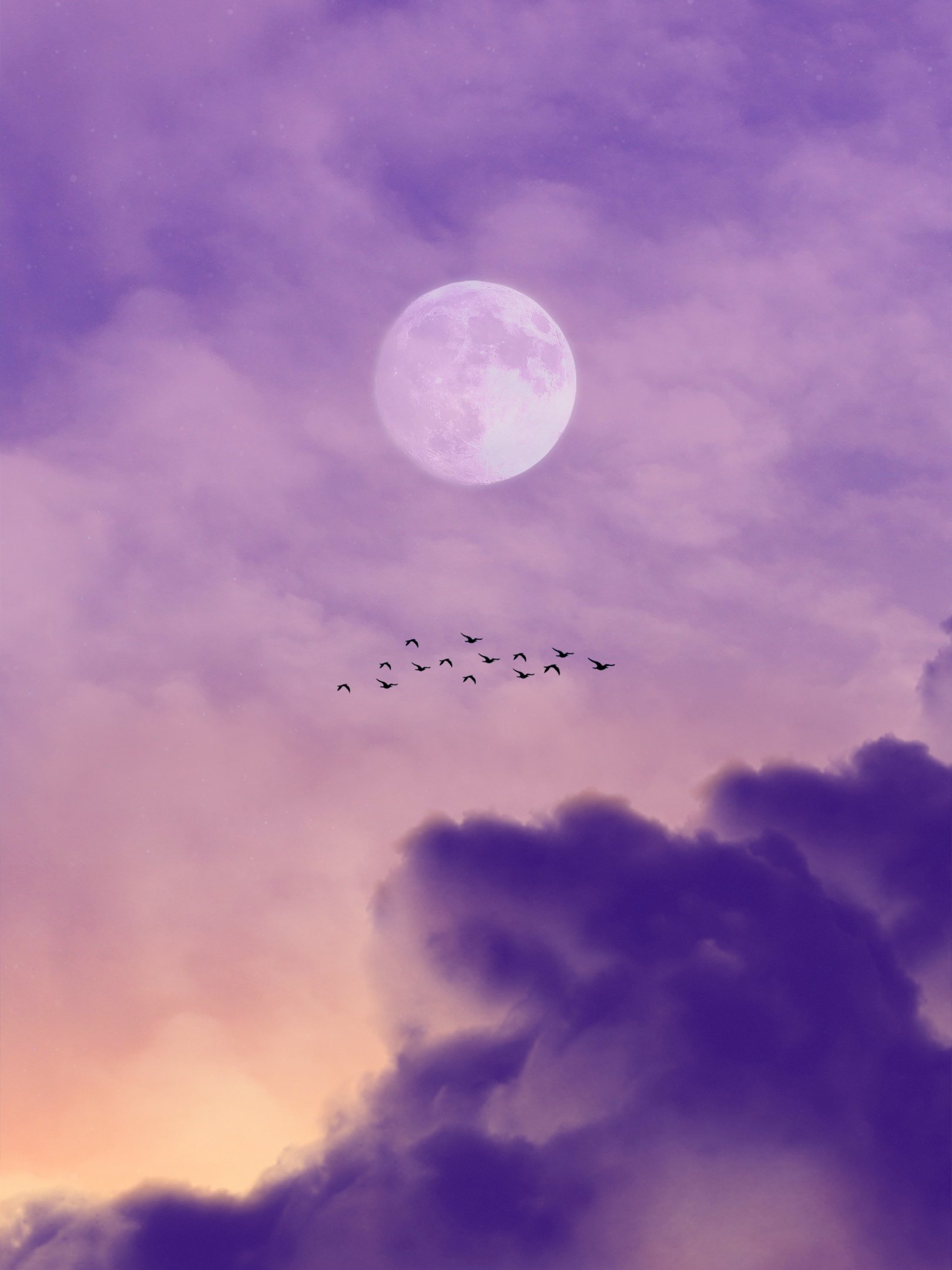Wallpaper: moon, clouds, birds - 1620x2160