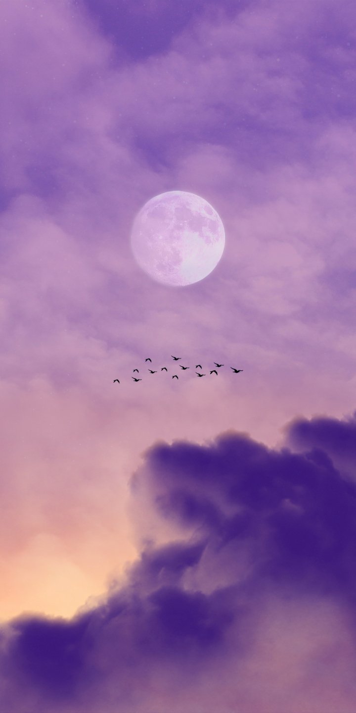 Wallpaper: moon, clouds, birds - 720x1440