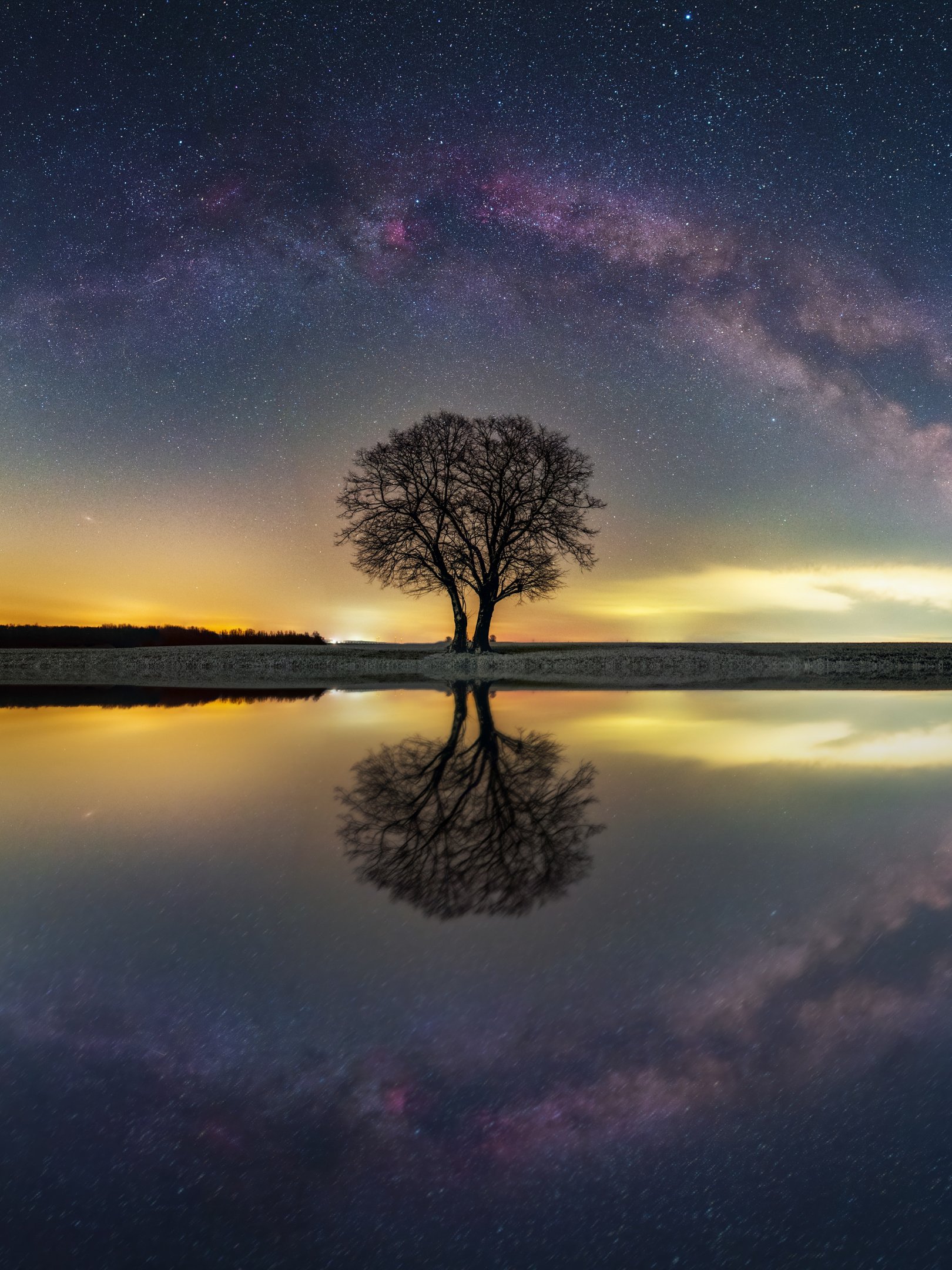 Wallpaper: milky way, tree, lake - 1620x2160