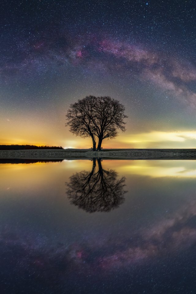 Wallpaper: milky way, tree, lake - 640x960