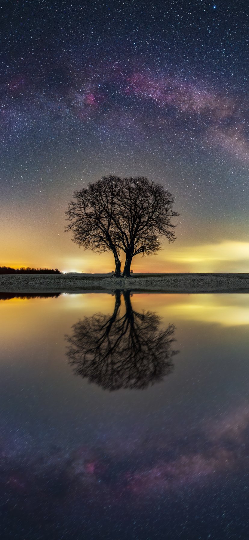 Wallpaper: milky way, tree, lake - 828x1792