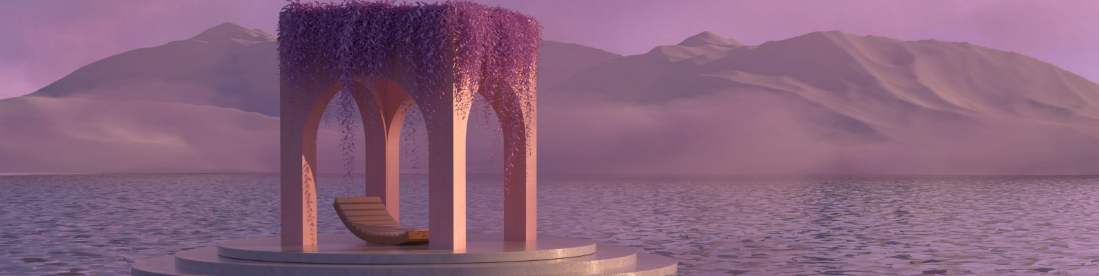Wallpaper: 3D modeling, pink, water - 1590x400