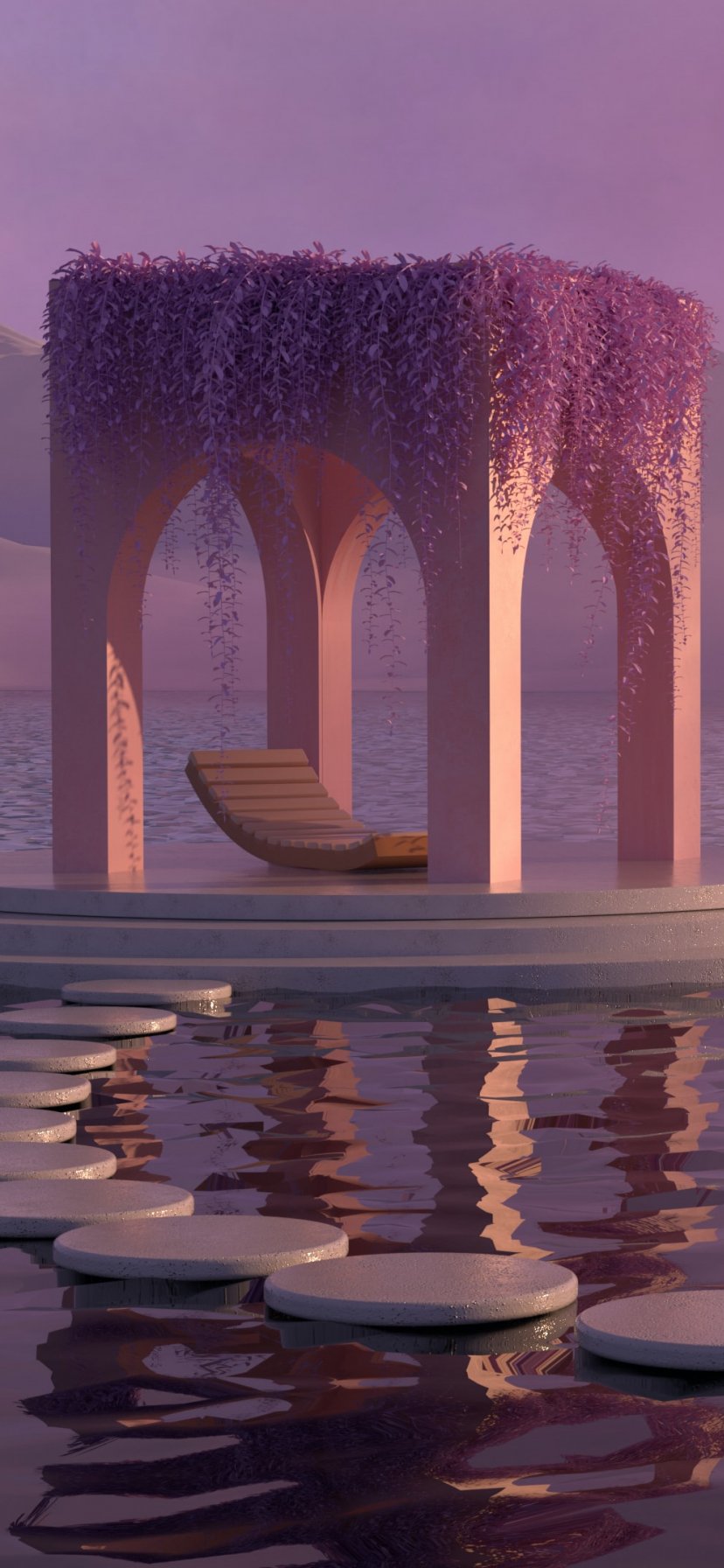 Wallpaper: 3D modeling, pink, water - 828x1792