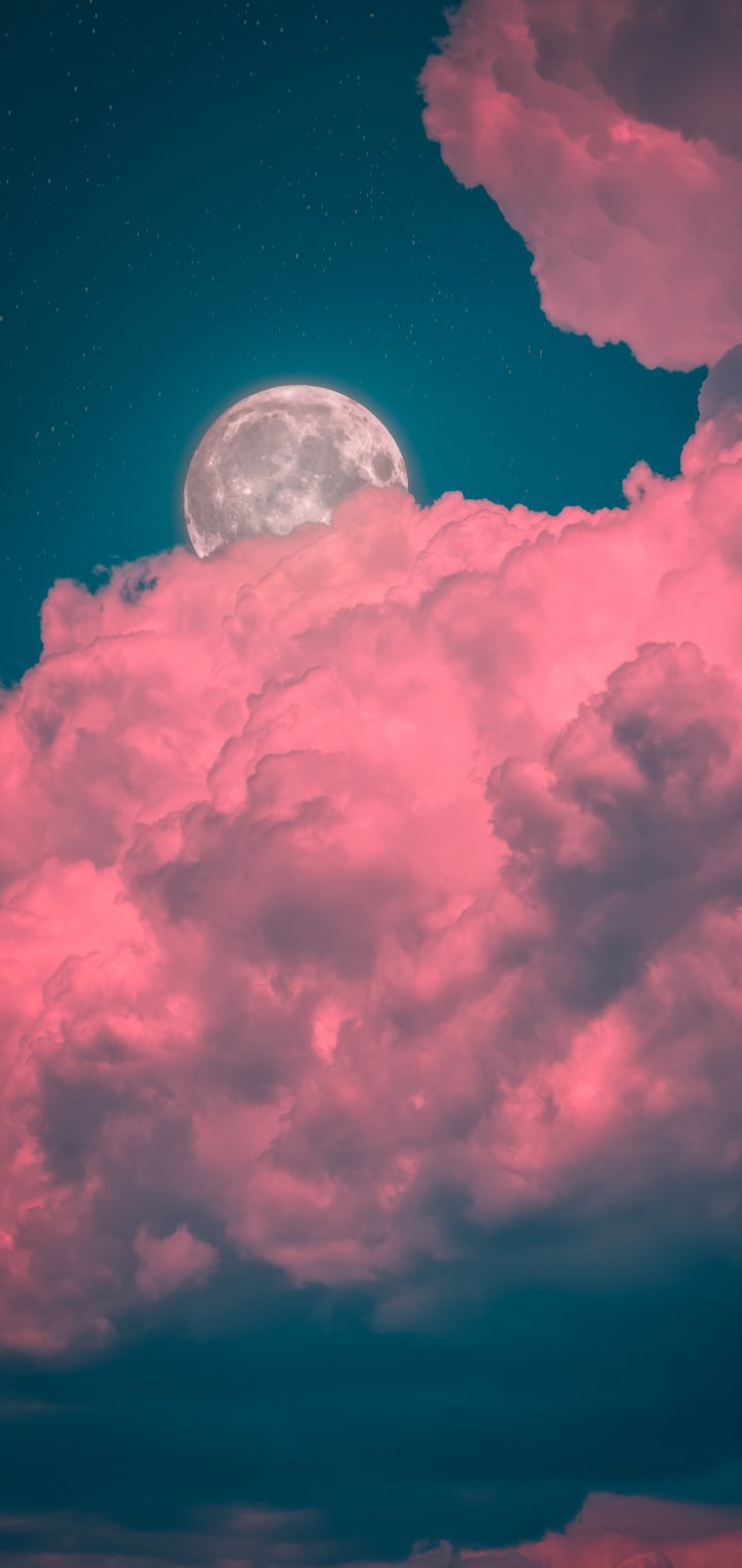 Wallpaper: moon, clouds, pink - 720x1520