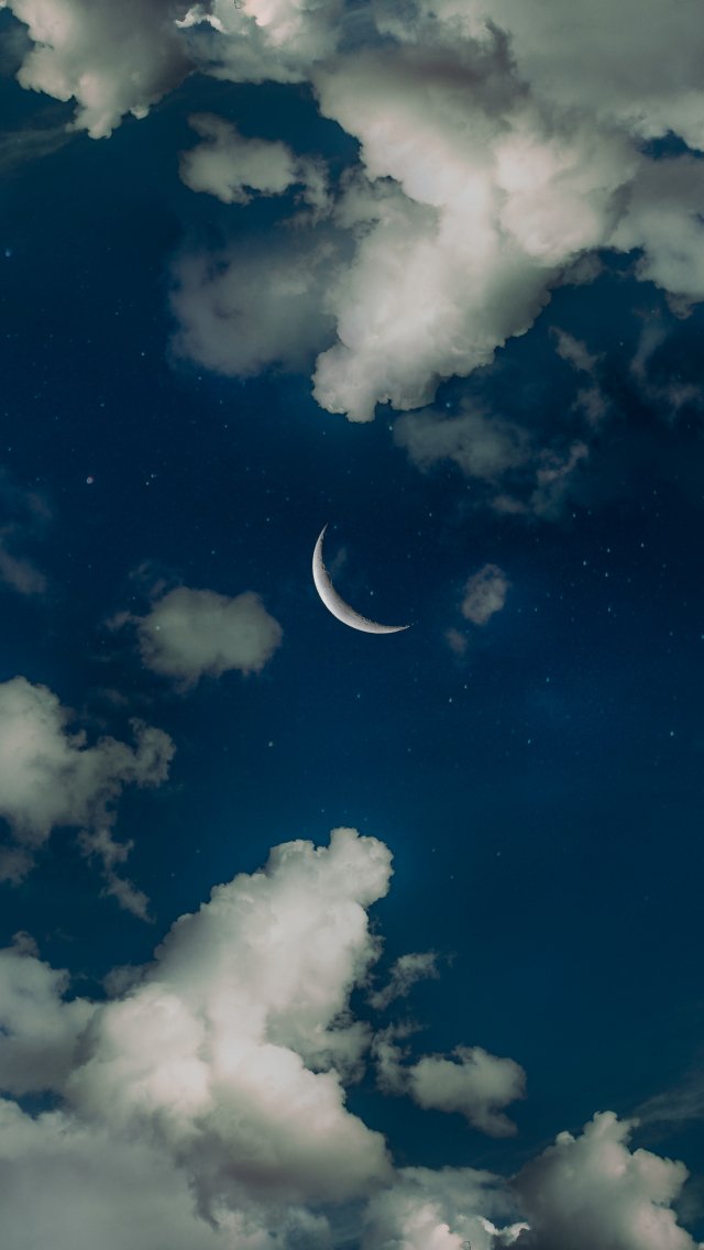 Wallpaper: month, stars, clouds - 640x1136