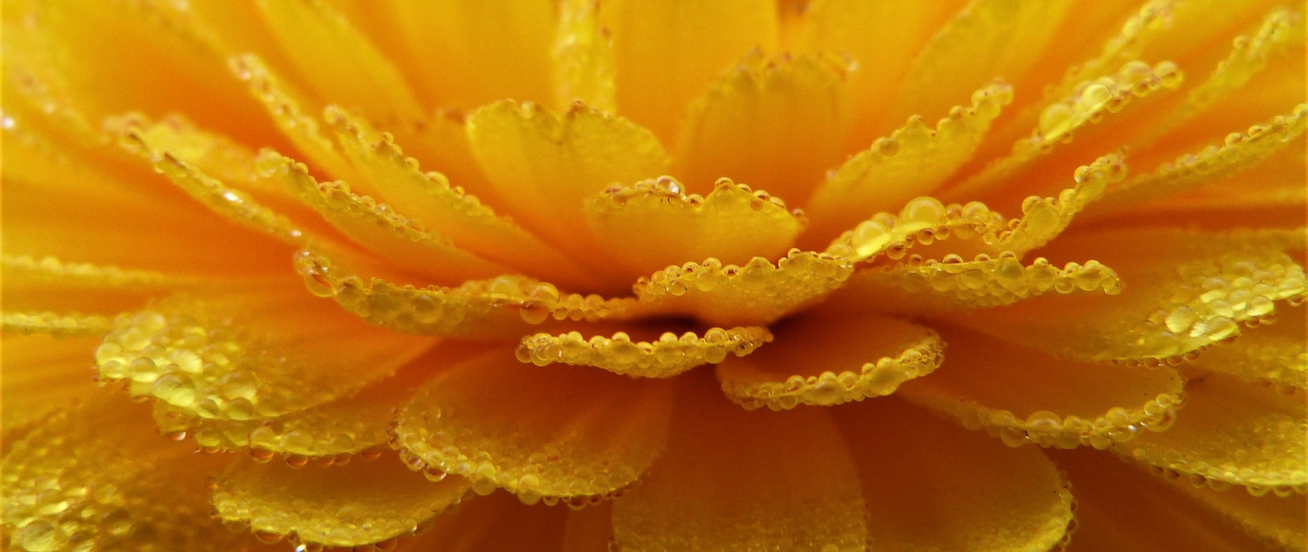 Wallpaper: dew drops, petals - 2560x1080