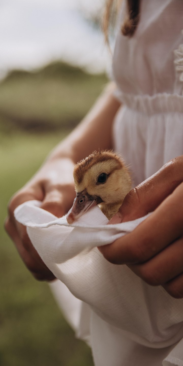 Wallpaper: ducklings, baby, hands - 720x1440