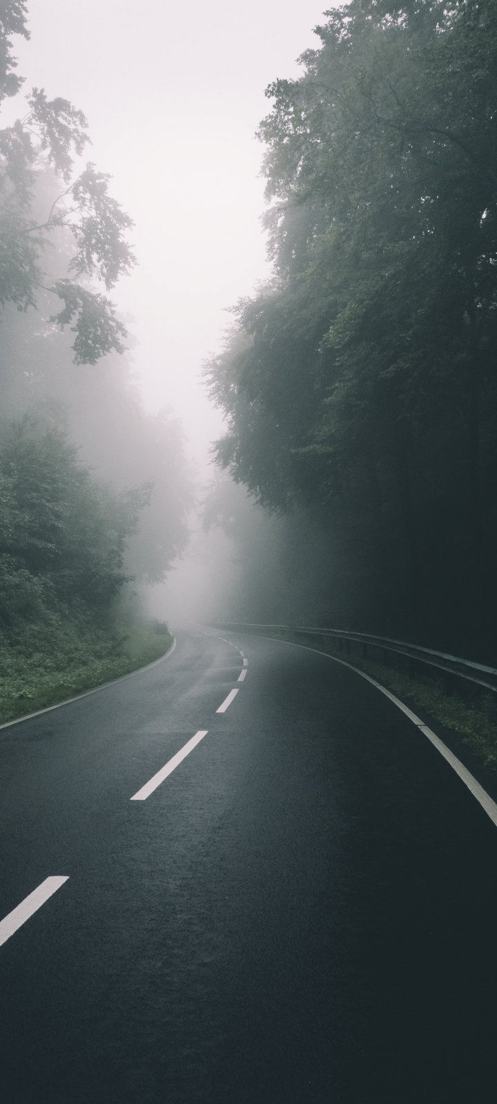 Wallpaper: road, forest, fog - 720x1600