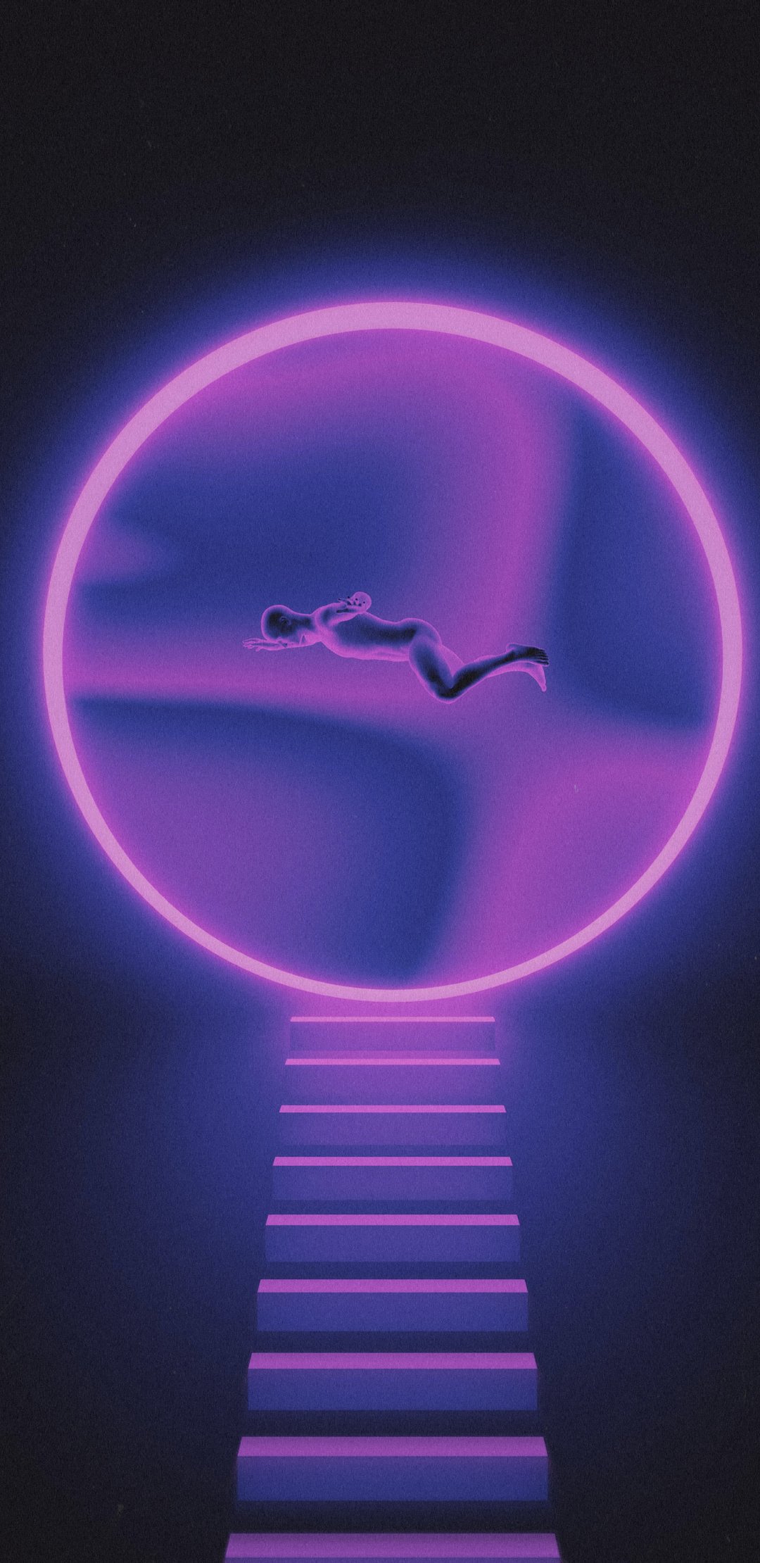 Wallpaper: graphics, staircase, man - 1080x2220