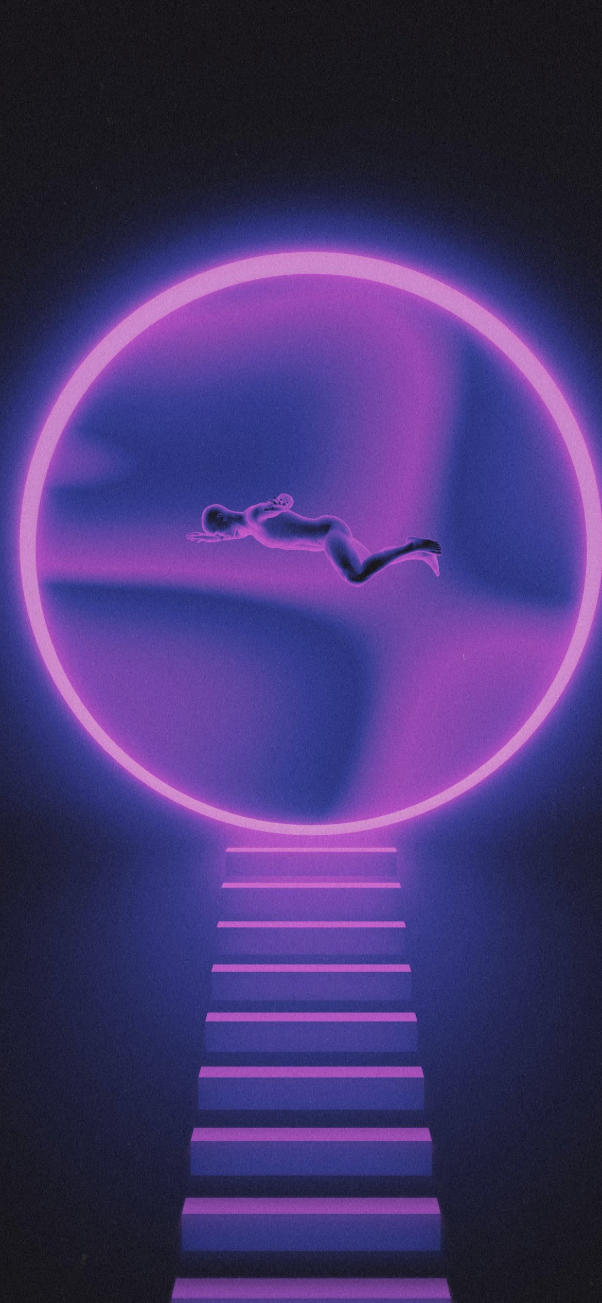 Wallpaper: graphics, staircase, man - 1170x2532