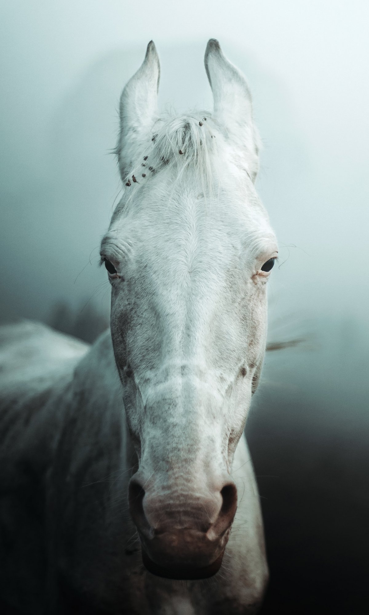 Wallpaper: white horse, fog - 1200x2000