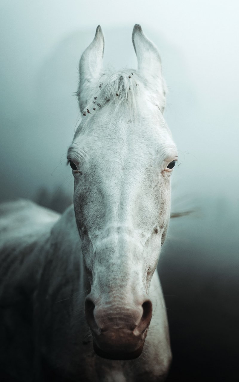 Wallpaper: white horse, fog - 800x1280