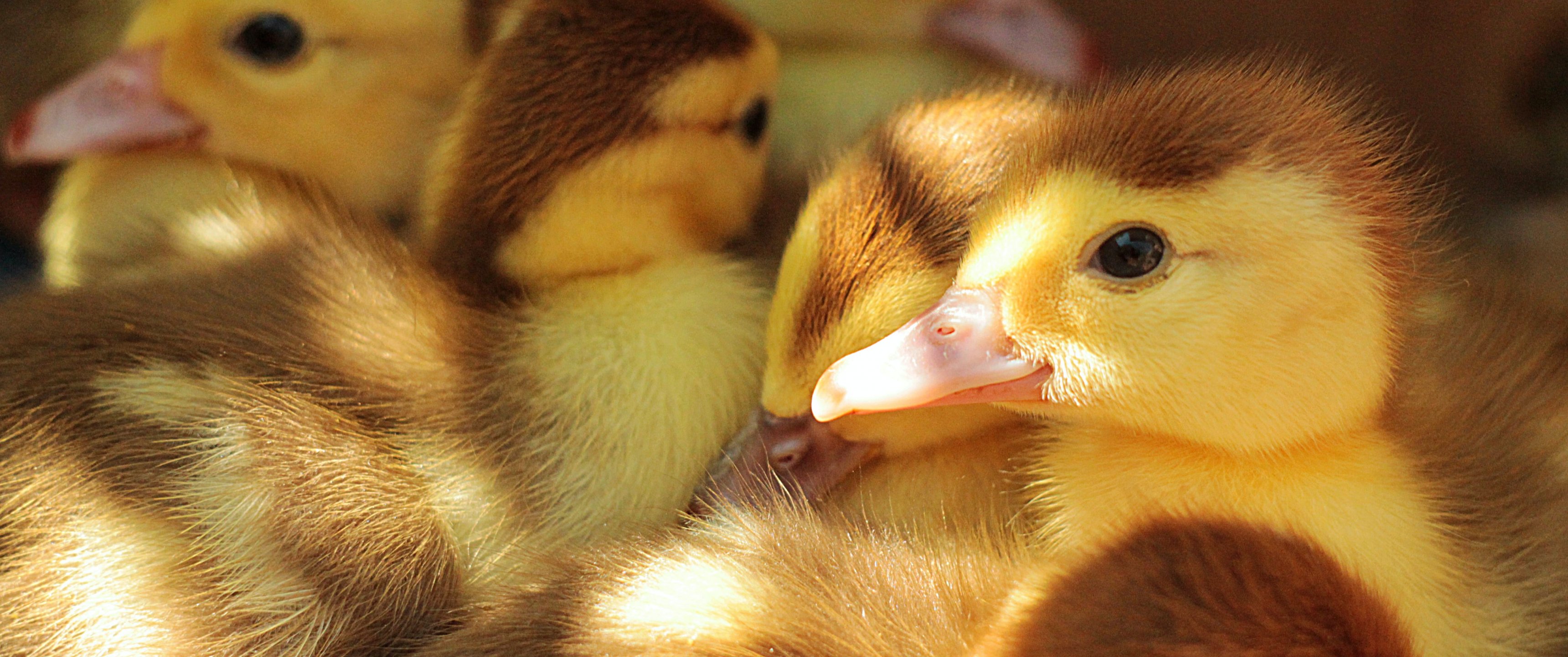 Wallpaper: ducklings, kids - 3440x1440