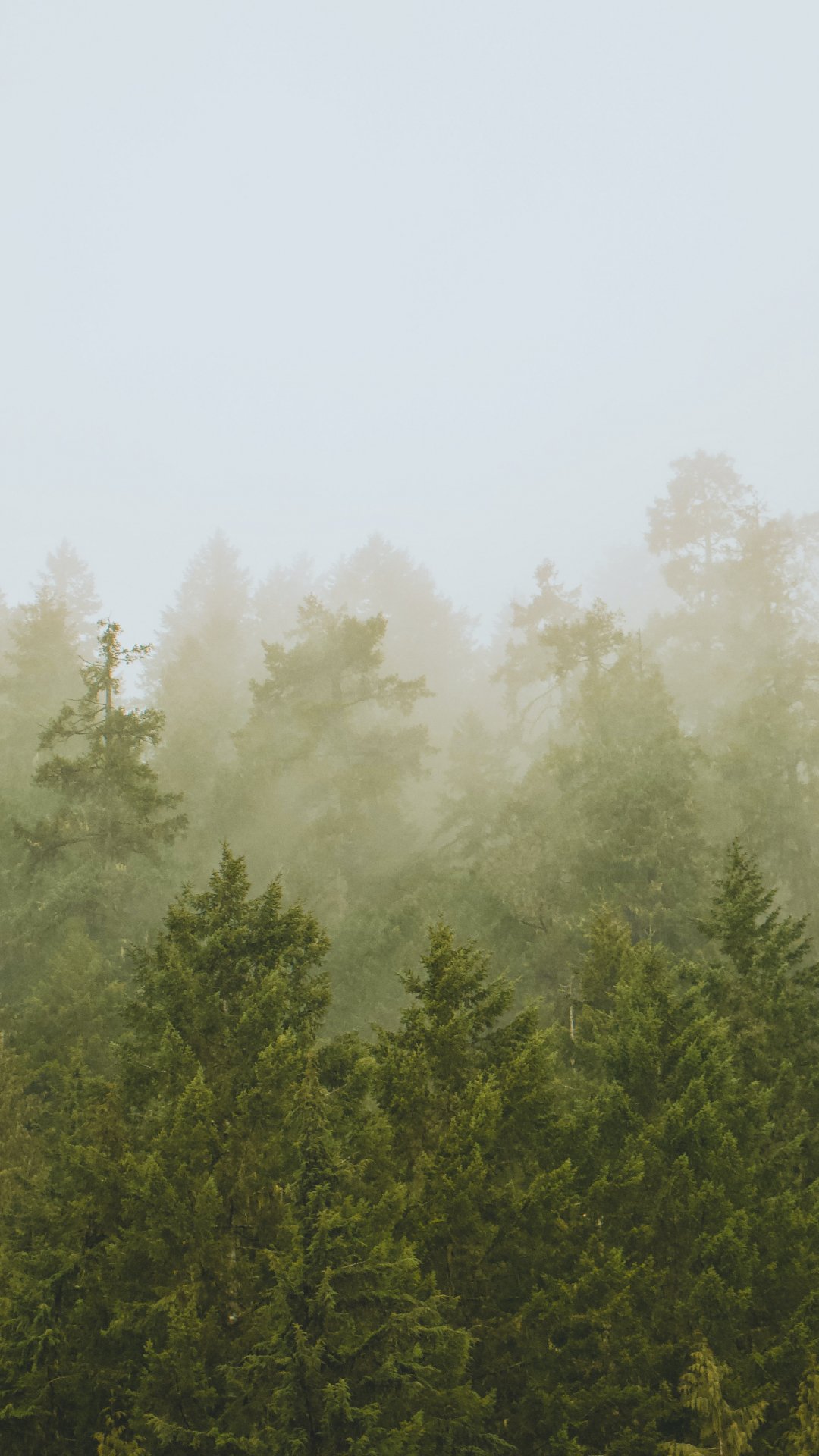 Wallpaper: coniferous forest, fog - 1080x1920