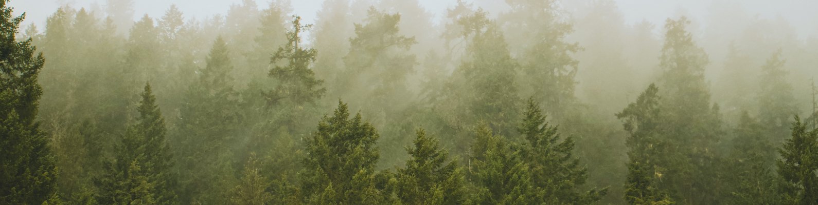 Wallpaper: coniferous forest, fog - 1590x400