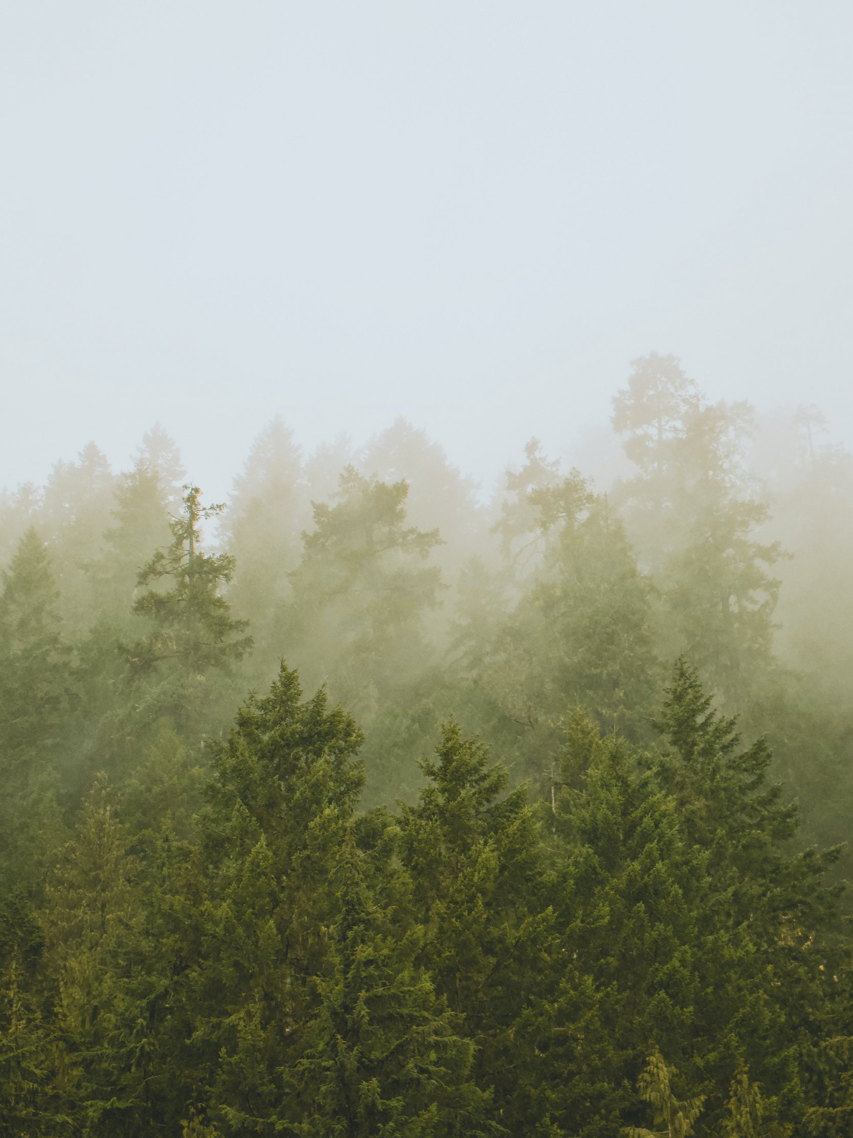 Wallpaper: coniferous forest, fog - 1668x2224