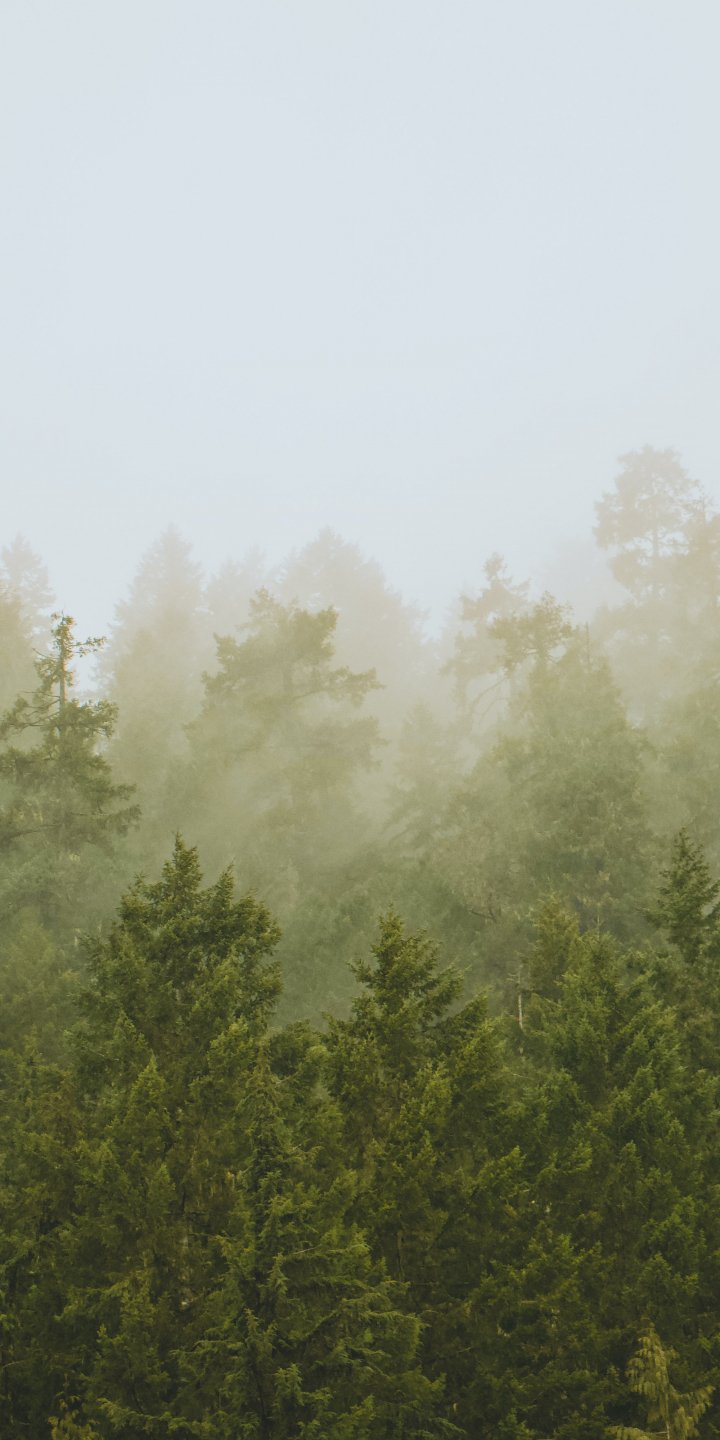 Wallpaper: coniferous forest, fog - 720x1440