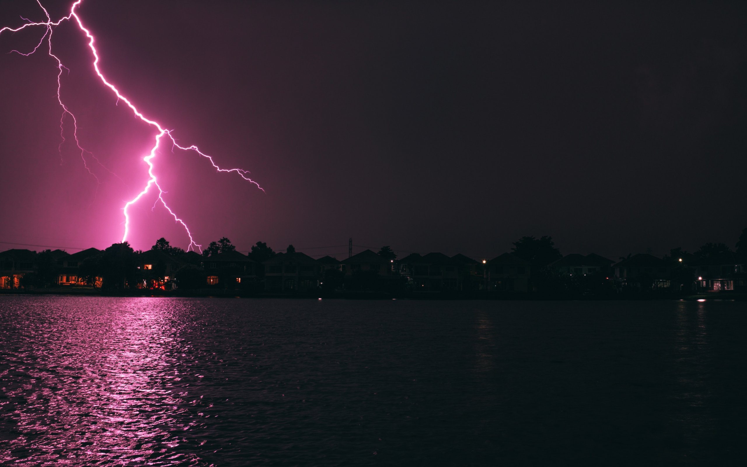 Wallpaper: lightning, night, coast - 2560x1600